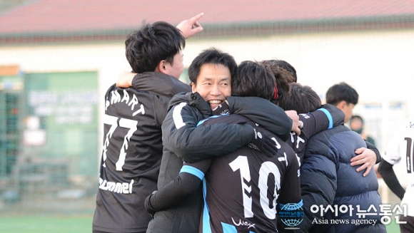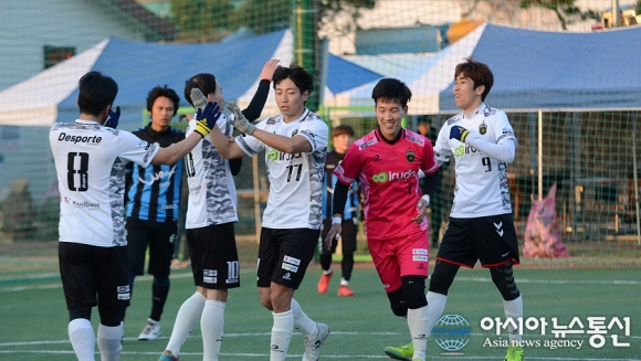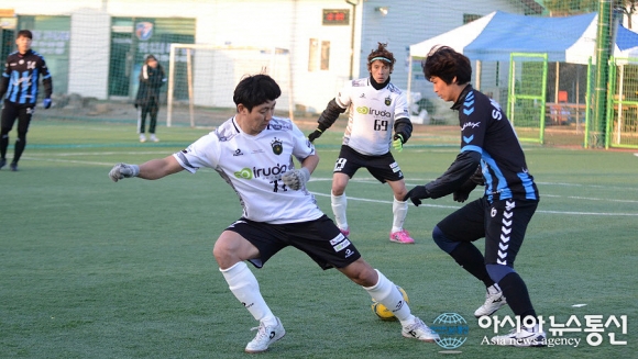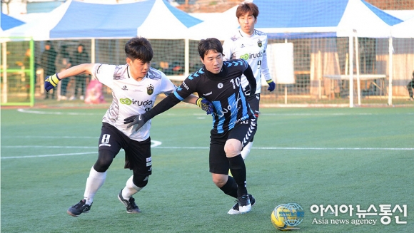 | 26일 충북 청주시 공항풋살에서 이틀간 펼쳐진 제4회 직지배 풋살대회 일반부 경기를 마감하며 결승전에서 울프가 혈전 끝에 TDFC를 2대1로 이겼다./아시아뉴스통신=정홍철 기자 |