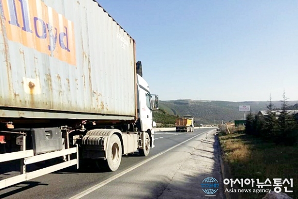 | 옛날에는 낙타가 물건을 실어 나르던 실크로드에 트럭과 트레일러들이 달리고 있다.(사진=강명구) |