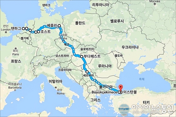| 3개월 동안 네델란드 헤이그를 출발해 터키 이스탄불까지 지나온 3300여km의 여정.(사진=강명구) |