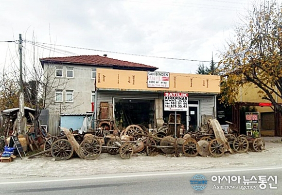 | 터키 이스탄불을 지나 Yanik에서 아다파자리로 가는 길에 있는 마차바퀴 교환소.(사진제공=강명구) |