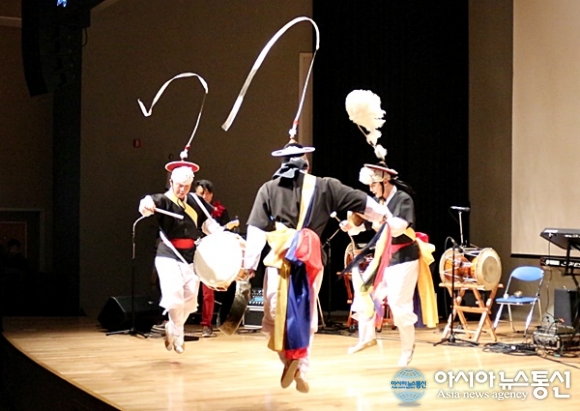 | 6일 세종시 문화재단이 시청 여민실에서 김덕수와 함께하는 여민락콘서트를 벌이고 있다. 이날 콘서트는 사물놀이 타악기와 일렉트릭 악기들이 조화를 이룬 공연으로 관람객들로부터 큰 호응을 얻었다./아시아뉴스통신=홍근진 기자 |