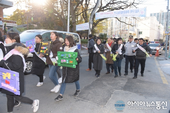| 지난 1일 사상구는 덕포1동 하강선대 어울림공원에서 ‘하강선대 음주청정구역 지정 및 선포식’을 열고 하강선대 음주청정구역 지정과 공공장소 음주 근절을 알리는 가두행진 캠페인을 실시했다.(사진제공=사상구청) |