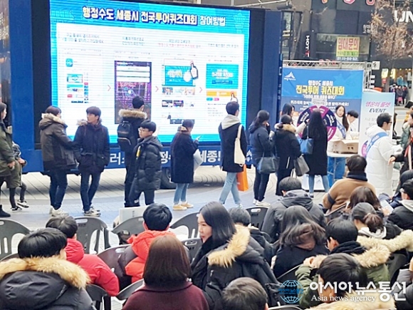 | 세종시는 전국을 돌며 '세종시=행정수도' 완성 분위기를 확산시키고 있는 이동식 홍보관이 대전 중구 으능정이 문화의 거리에서 홍보활동을 펼쳤다고 10일 밝혔다.(사진제공=세종시청) |
