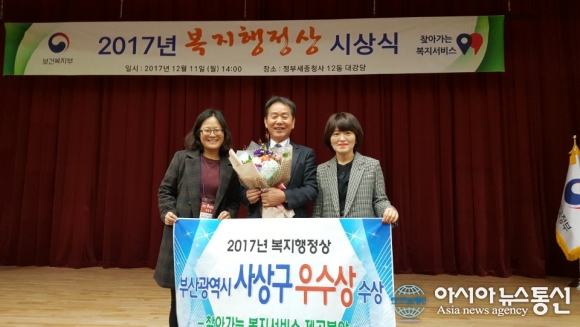 사상구(구청장 송숙희)는 지난 11일 정부세종청사에서 개최된 복지행정상 시상식에서 찾아가는 복지서비스 제공 평가에서 2년 연속 우수 지자체로 선정됐다고 13일 밝혔다.