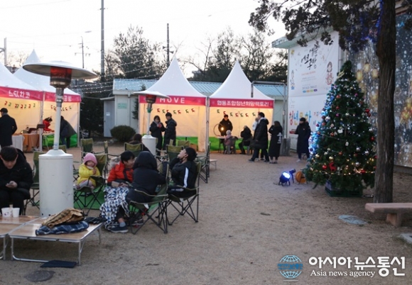 | 16일 세종시 조치원읍 구 정수장 '크리스마스 선물 마켓' 행사장에서 날이 저물어 추워진 날씨에도 불구하고 청년과 어린이들이 마냥 즐거워 하고 있다./아시아뉴스통신=홍근진 기자 |