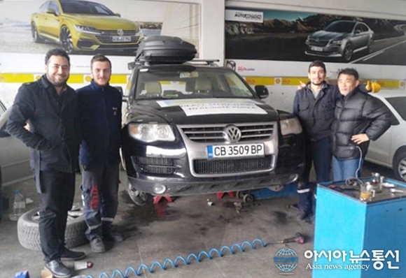 | 터키의 삼순시에서 자동차에 빨간 경고등이 들어와 브레이크 페드를 교환하고 있다.(사진=송인엽) |