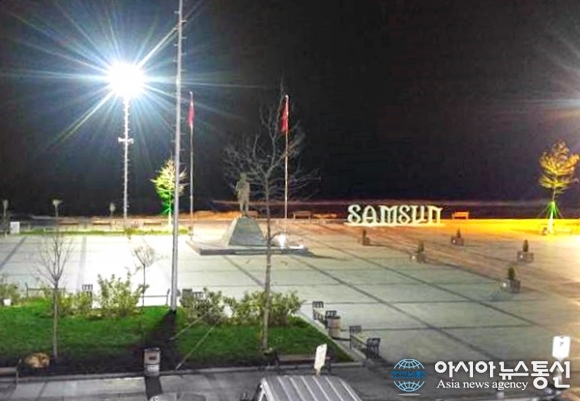 | 터키 바프라를 지나 하루 쉬어 가기로 한 인구 70만의 도시 삼순시의 호텔앞 야경.(사진=송인엽) |