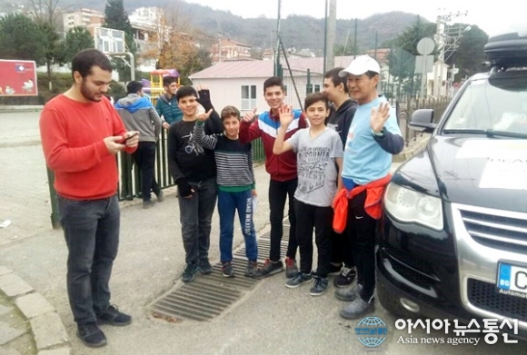 | 터키 Gulyali라는 작은 마을 초등학교를 지나다 만난 아이들과 기념사진을 찍었다.(사진=강명구) |