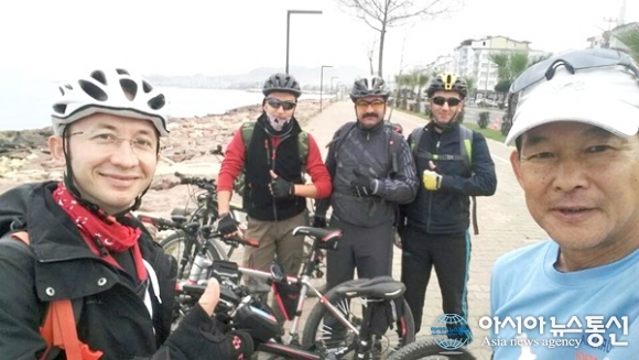 | 터키 Ordu주를 지나다 산악자전거를 타고 트래킹을 하는 선생님들과 학생을 만났다.(사진=강명구) |