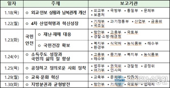 | 오는 18일부터 31일까지 이낙연 국무총리 주재로 열리는 정부업무보고 일정표.(자료제공=국무총리실) |