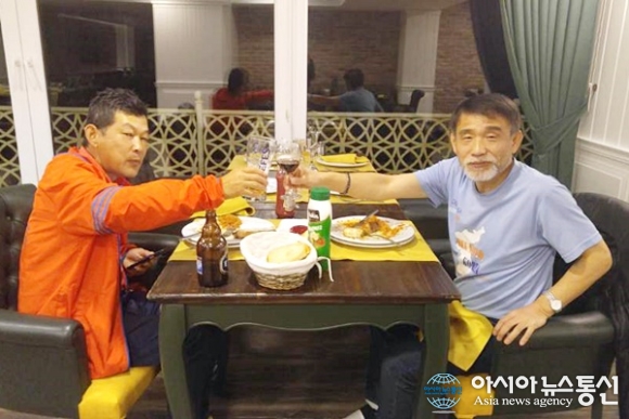 | 터키 Eynesil의 흑해가 내려다 보이는 리조트 식당에서 두 남자가 식사를 하고 있다.(사진=송인엽) |