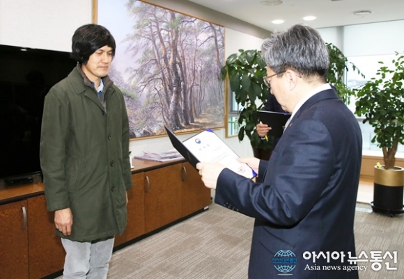 | 이원재 행복청장(오른쪽)이 17일 편해문씨를 어린이놀이터 총괄계획가로 위촉했다.(사진제공=행복청) |
