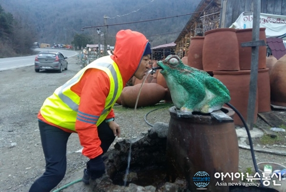 | 그루지아 Shorapani에서 트삭바로 가는 길에 항아리를 만드는 가게 앞에 있는 음수대.(사진=강명구) |
