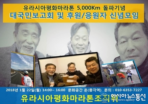 유라시아평화마라톤 조직위원회가 22일 오후 2시 서울 종로 '문화공간 온'에서 신년인사회를 연다고 21일 밝혔다.