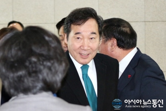 | 이낙연 국무총리가 23일 정부세종컨벤션센터에서 열린 올해 세번째 정부업무보고에 앞서 로비에서 참석자들과 인사를 나누고 있다. 이날 업무보고는 '국민안전-재난재해대응'을 주제로 행정안전부 고용노동부 국토교통부 경찰청 소방청 해양경찰청이 실시했다./아시아뉴스통신=홍근진 기자 |