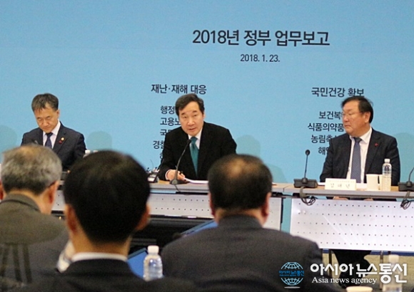 | 이낙연 총리가 23일 열린 정부업무보고에서 모두발언을 하고 있다./아시아뉴스통신=홍근진 기자 |