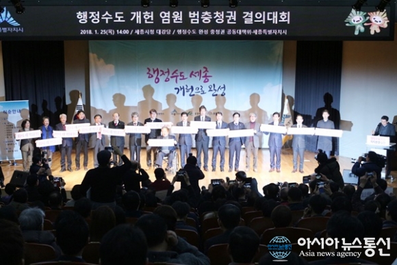 세종시가 25일 대강당에서 행정수도 개헌을 염원하는 '충청권 결의대회'를 개최했다.