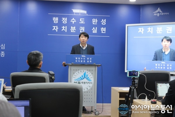 | 25일 세종시 공공시설 복합단지 확장을 밝히는 엄정희 건설교통국장./아시아뉴스통신=홍근진 기자 |