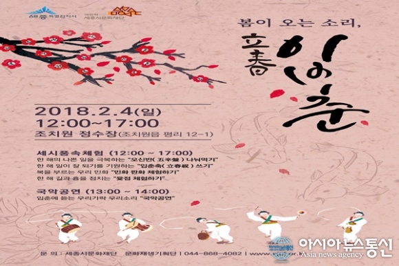 세종시문화재단은 오는 4일 조치원 정수장에서 '봄이 오는 소리, 입춘' 행사를 연다고 2일 밝혔다.