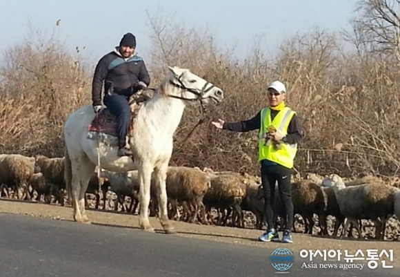 | 아제르바이잔 아그자베디에서 sharg로 가는 길에 만난 말을 탄 양치기 목동과 함께.(사진=강명구) |