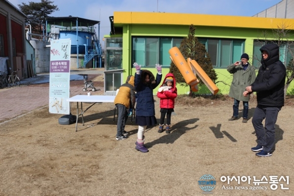 | 4일 전국 대부분 지역에 한파주의보가 내려진 가운데 세종시 조치원 구 정수장터에서 열린 '立春' 맞이 행사장에서 아빠와 함께 온 어린이가 윷점을 체험하고 있다./아시아뉴스통신=홍근진 기자 |