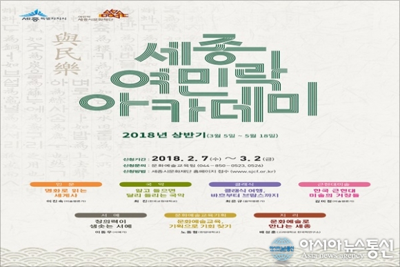 세종시문화재단이 다음달 2일까지 선착순으로 여민락아카데미 상반기 정기강좌 수강생을 모집한다.