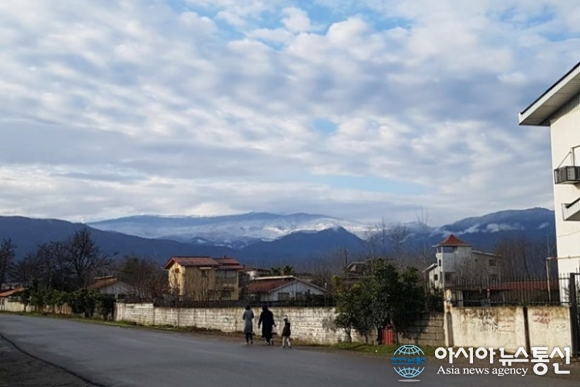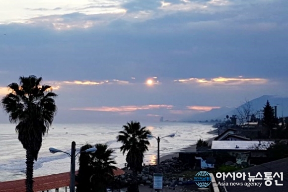 | 이란의 아바스아바드에서 Nowshahr로 가는 카스피해 연안에 구름사이로 보이는 태양.(사진=김태형) |