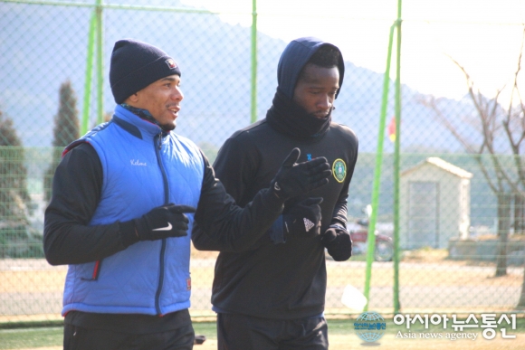 | 안산그리너스FC, ‘어제보다 나은 내일'꿈꾼다2(라울(왼쪽), 코네(오른쪽)남해 전지훈련).(사진제공=안산시청) |