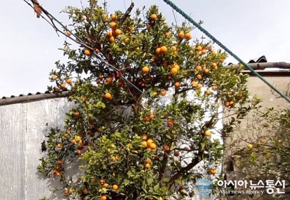 나무에서 큼직한 놈으로 하나 따서 껍질을 벗겨 한 조각을 입속에 덥석 넣는다. 입속에서 오렌지 알들이 터지며 함성을 지른다.