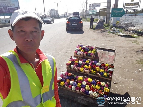 | 이란 바볼에서 봄이 오는 것을 느끼며 길가에 있는 화분을 배경으로 사진을 찍었다.(사진=강명구) |