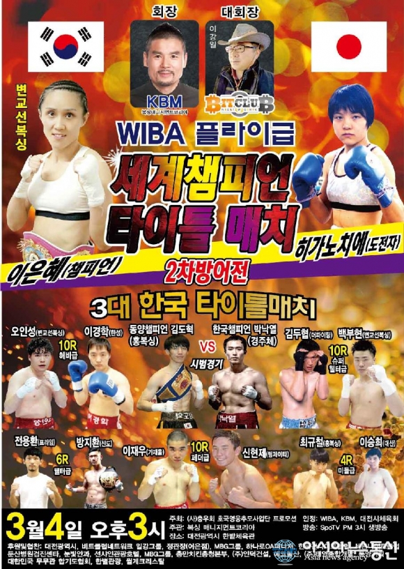 대전 출신 여자복싱 세계 플라이급 챔피언인 이은혜 선수가 3월 4일 오후 3시 대전 한밭체육관에서 일본의 히가노치에를 상대로 세계타이틀 2차 방어전에 나선다.