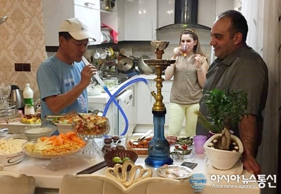 | 마단나의 조카 니샤 생일 파티에서 후카 또는 시샤라 불리는 물담배를 피우고 있다.(사진=강명구) |