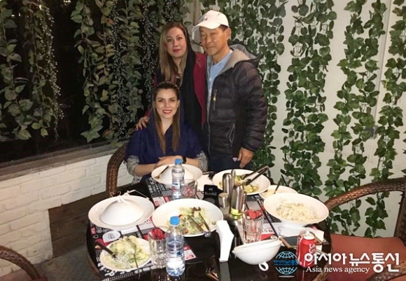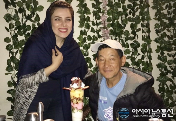 | 테헤란 이태리 식당에서 영국이 친구 마단나의 여동생과 함께 기념사진을 찍고 있다.(사진=강명구) |