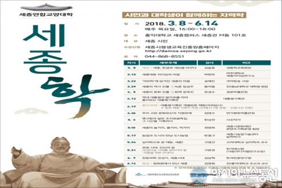 세종시 인재육성평생교육진흥원이 오는 8일 오후 4시 홍익대학교 세종캠퍼스에서 세종연합교양대학을 개강한다.