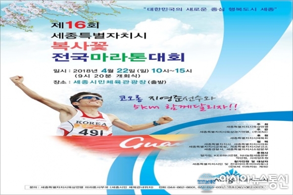 새 봄을 맞아 '제16회 세종시 복사꽃 전국 마라톤대회'가 시육상연맹 주최로 다음달 22일 열린다.