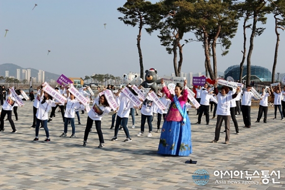 | 11일 세종시 호수공원에서 열린 행정수도 완성 시민대책위 플래시몹./아시아뉴스통신=홍근진 기자 |
