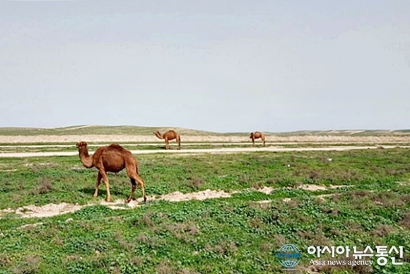 | 당초 계획보다 460km 떨어진 바그란 국경을 넘자 사막의 급행열차 낙타들이 보인다.(사진=김창건) |