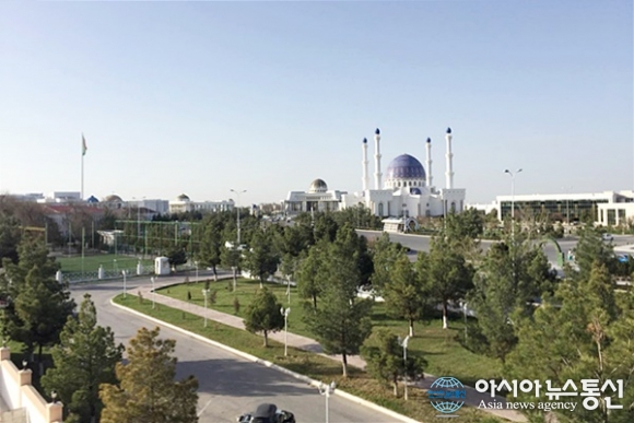 | 투르크메니스탄 마리 Margush 호텔에서 바라본 투르반 굴리 하지모스크의 멋진 모습.(사진=김창건) |