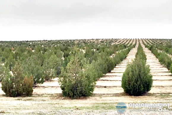 | 사막의 붉은 비단이 융단처럼 대지에 펼쳐지고 그 위에 수가 놓이듯이 장신된 관목들.(사진=김창건) |