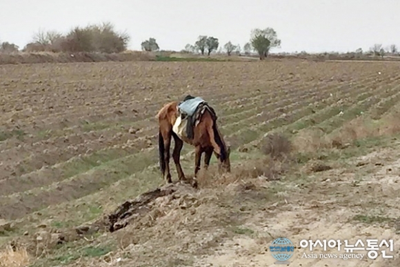 | 한 목동이 몰고 가던 당나귀가 대오를 이탈해 남의 밀밭에 들어가 포식을 하고 있다.(사진=김창건) |
