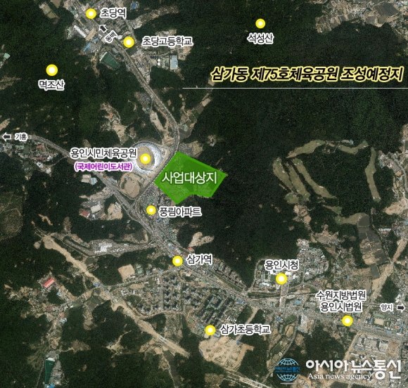 용인시민체육공원 맞은편인 용인시 처인구 삼가동 산19일대 14만8313㎡의 공원용지에 대규모 민간공원이 조성된다.