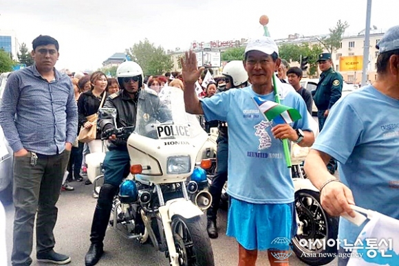 강명구 평화마라톤 조직위원회가 17일(현지 시간) 우즈베키스탄 타슈켄트 바부르 서울공원에서 8000km 돌파 기념 행사를 가졌다고 18일 밝혔다.