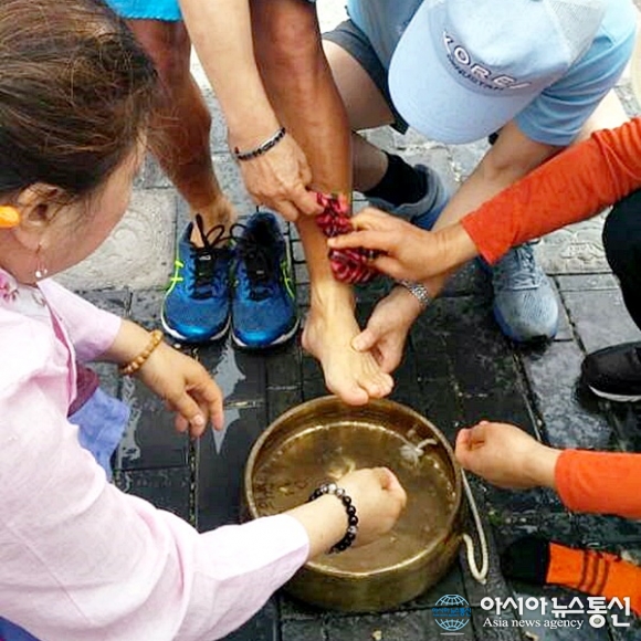 특히, 8000km를 달려온 내 발을 닦아주는 세족식 행사에는 김종근 님이 특별히 지리산 계곡물을 떠와서 역시 LA에서 온 김현숙님이 내 발을 씻겨주었다.