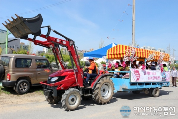 | 21일 세종시 문화예술회관일원에서 조치원복숭아 봄꽃축제가 열린 가운데 복사꽃과 배꽃이 핀 봉산동까지 한바퀴 돌아 오는 트랙터가 출발하고 있다./아시아뉴스통신=홍근진 기자 |