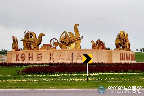 | 카자흐스탄 심켄트에서 Mashat로 가는 길에 로타리에 조형물들이 세워져 있다.(사진=김현숙) |