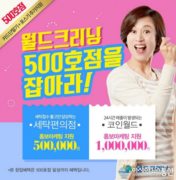 세탁 전문 프랜차이즈 ㈜월드크리닝이 전국 가맹점 500호점 돌파를 앞두고 이를 기념한 프로모션을 시작한다.(이미지제공=월드크리닝)
