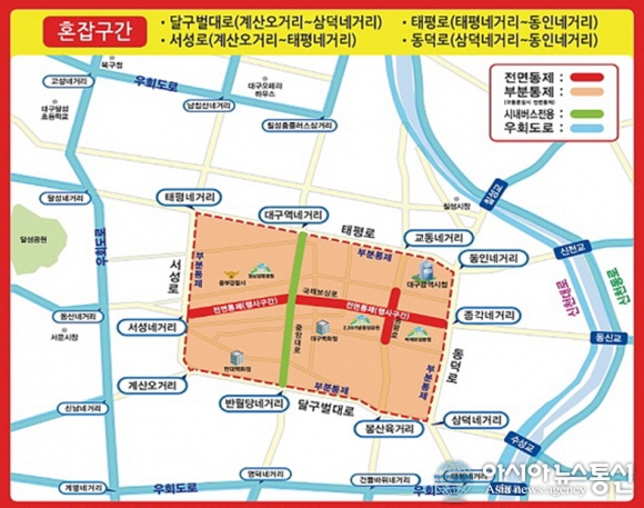또한 지난해와 달리 축제기간이 장기연휴 기간에 포함되고 평시 주말 교통량도 전년과 비슷한 수준으로 분석됐으나 태평지하도 공사가 지난해와 동일하게 진행되고 주변가로인 태평로, 동덕로 일부 구간에서는 극심한 차량정체 현상이 발생할 것으로 예상된다.