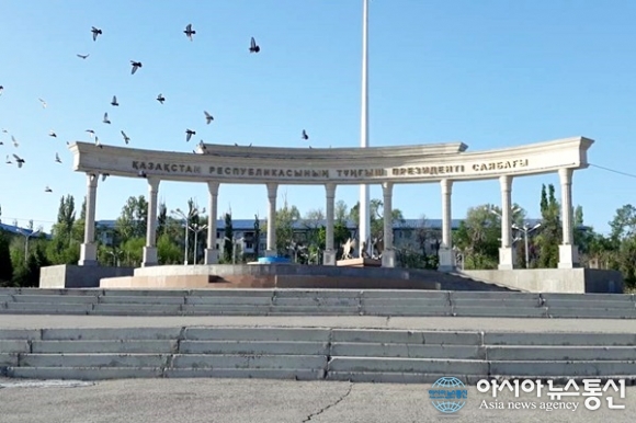 | 카자흐스탄 타라즈서 악출락으로 가는 길 한 광장에 평화의 상징 비둘기가 날고 있다.(사진=김현숙) |