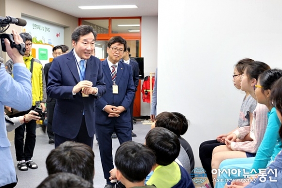 | 이낙연 국무총리가 4일 세종시 조치원 대동초등학교를 방문, 안전체험 수업을 참관하고 학생들에게 "위험요소로 부터 자신을 지키는 일은 자신이 먼저 해야 한다"고 강조했다./아시아뉴스통신=홍근진 기자 |