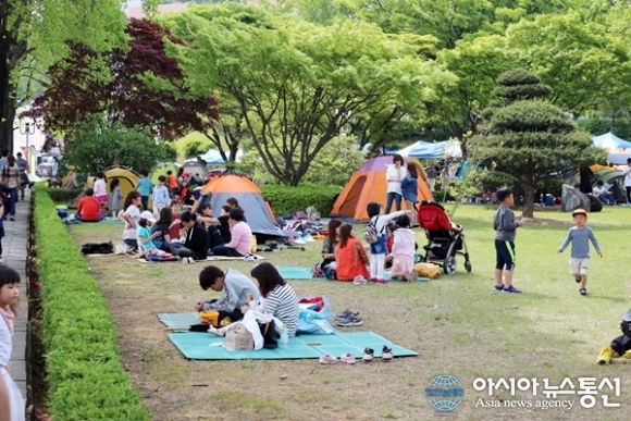 | 제96회 어린이날을 맞아 고려대학교 세종캠퍼스에서 세종시 구도심 '어린이날 한마당' 행사가 열려 아이들을 데리고 놀러온 가족들이 잔디밭에서 즐겁게 놀고 있다./아시아뉴스통신=홍근진 기자 |